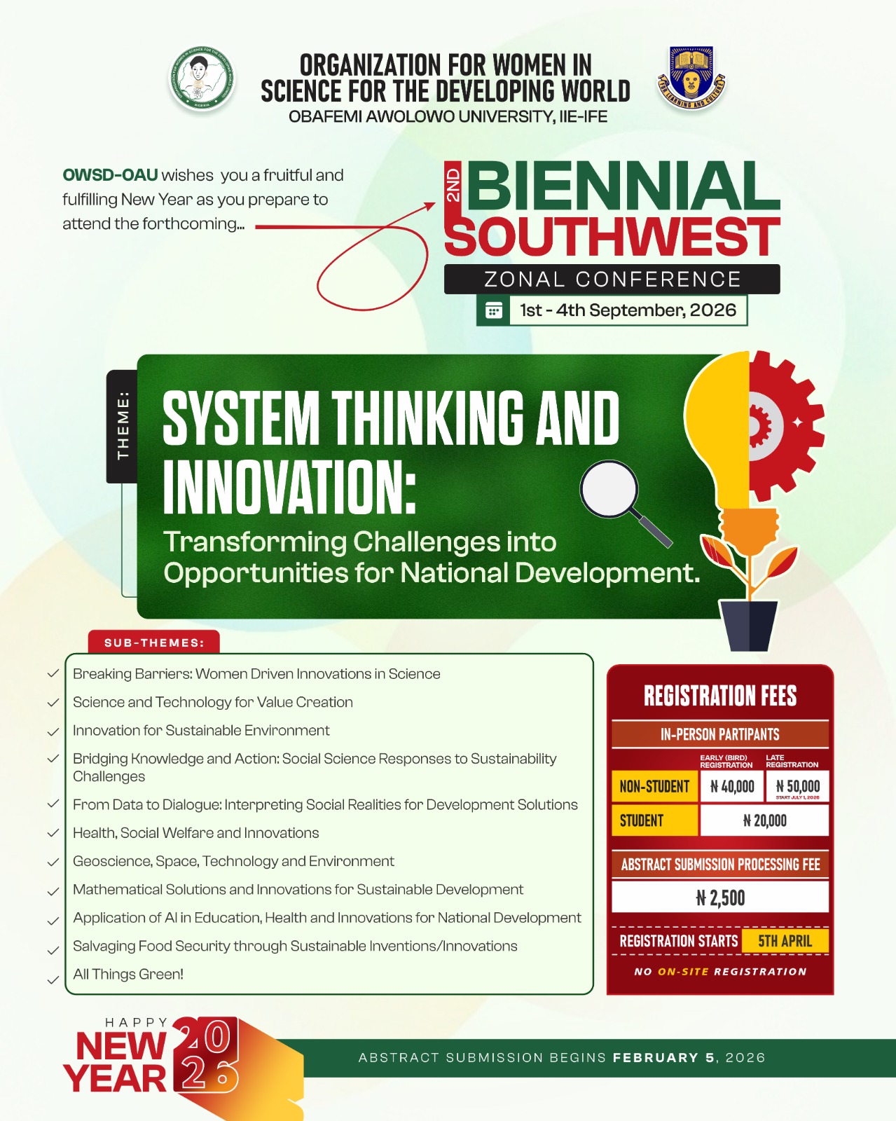 The conference is open to women scientists, researchers, academics, postgraduate students, policymakers, development practitioners, and stakeholders interested in advancing science, innovation, and sustainable development in the developing world. Male allies and partners are also welcome where applicable.